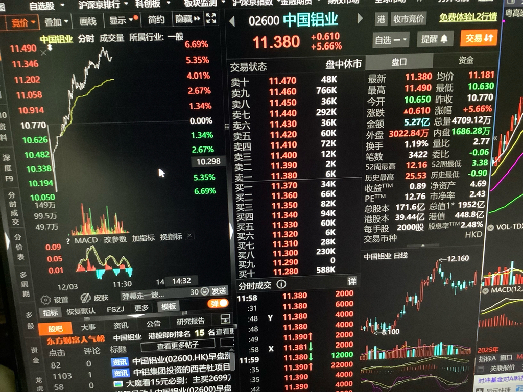 11:30后半小时买超加大:大买3022万股一卖1686万股=大买超1336万股了,继续向大莫目标15元