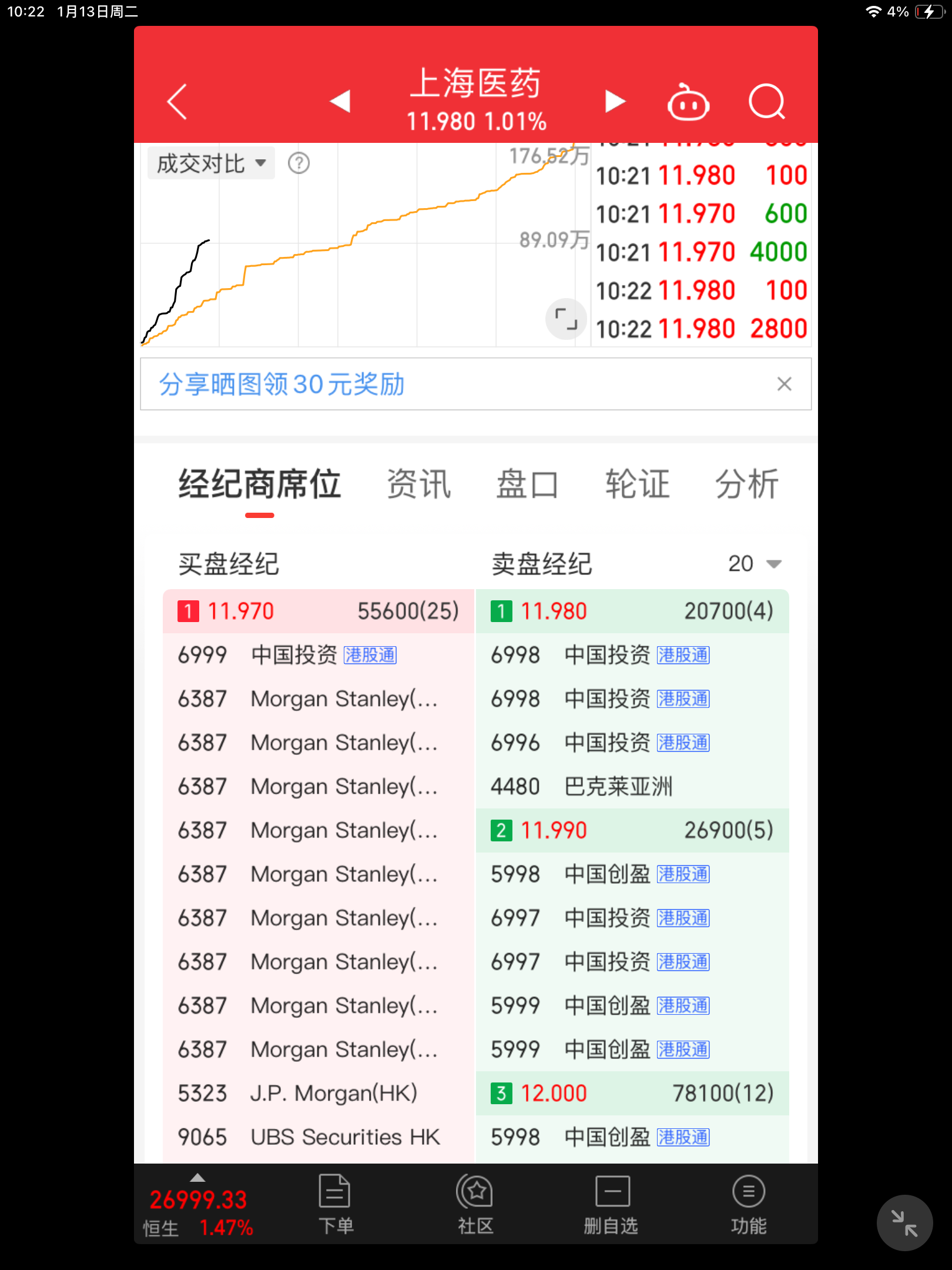 港股通成交的基本是散户,昨天的卖出竟然高达1900万,整个成交才2000多一点,而花旗买入占了一半,这5天港股通每天都是大量卖出,看到这些数据应该安心增一些了。