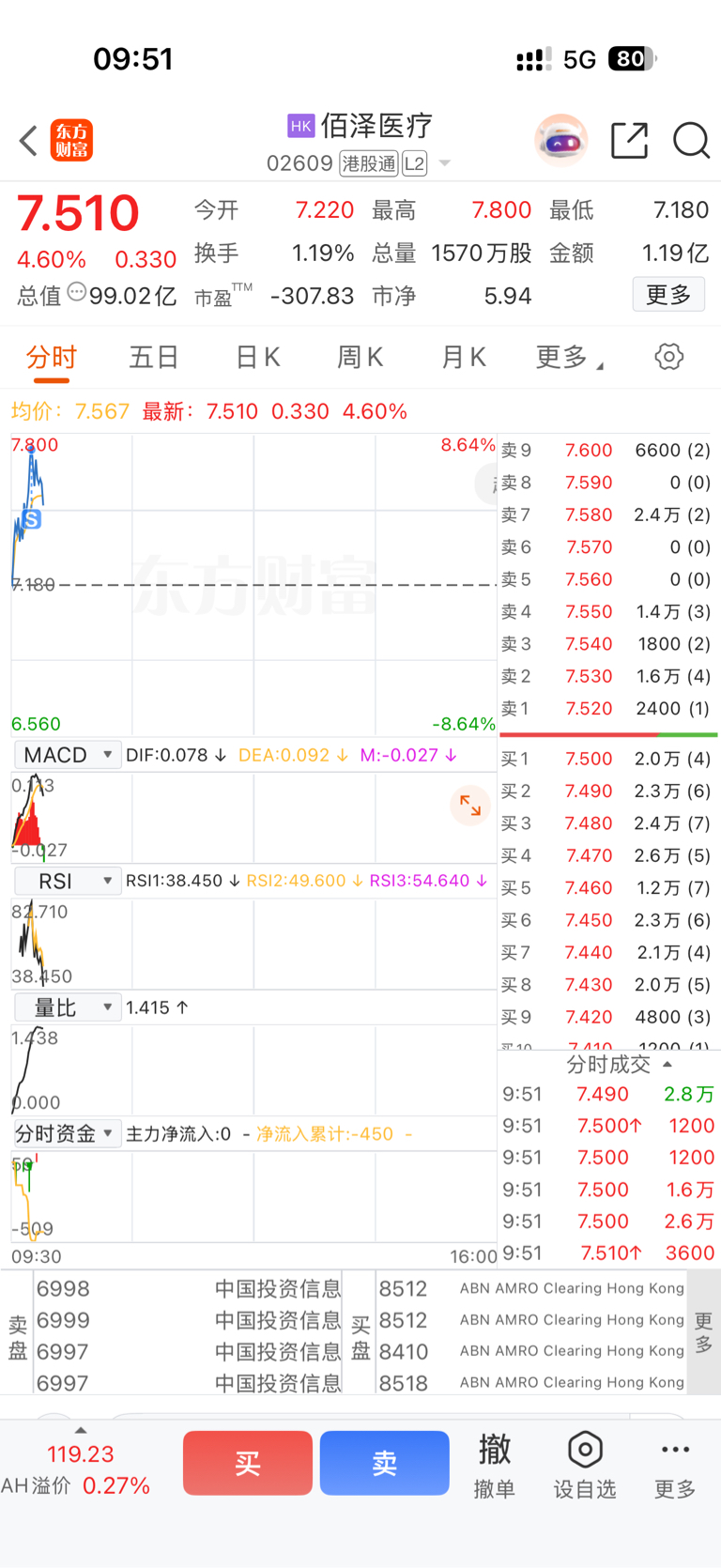 $佰泽医疗(HK|02609)$ 7.74卖了,不知道会不会后悔