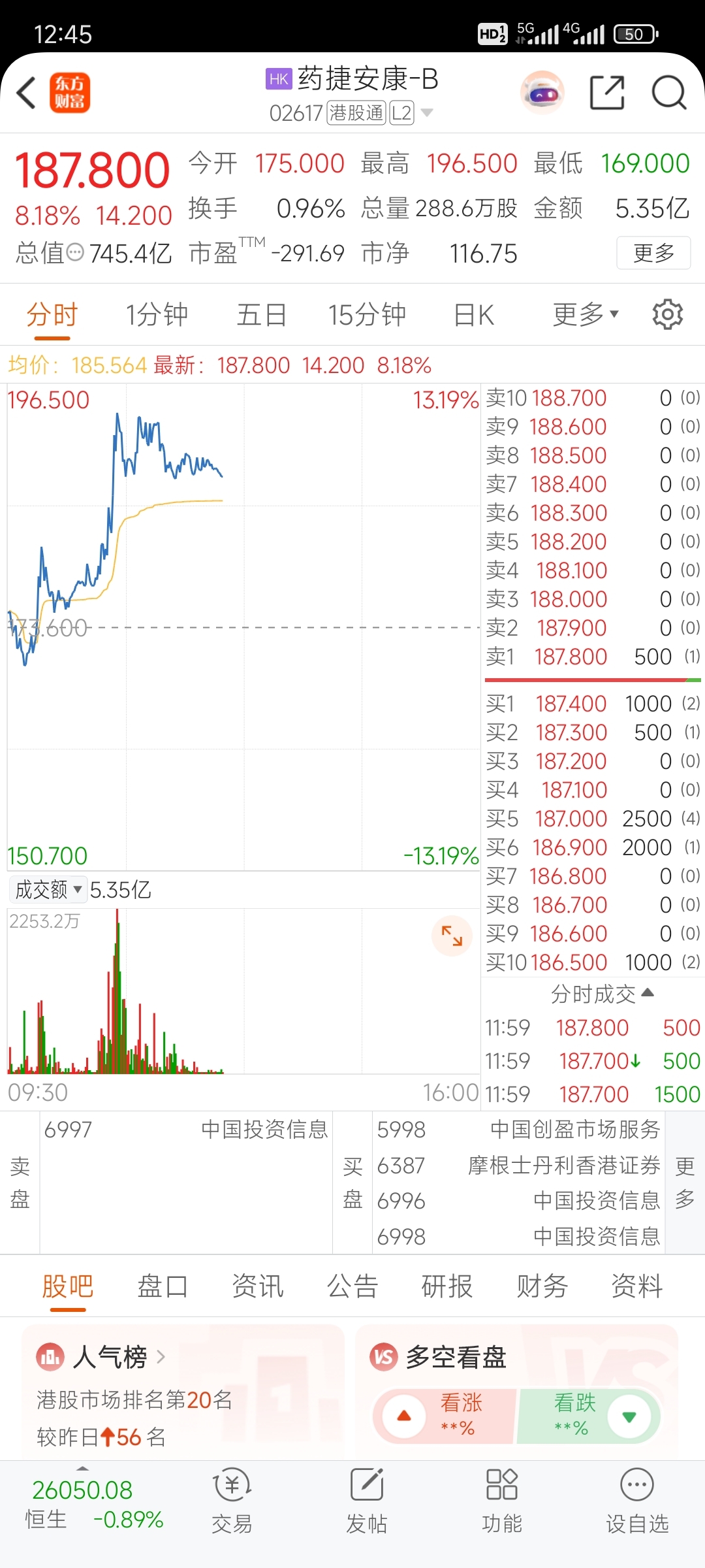 $药捷安康-B(HK|02617)$ 为啥卖盘这么少?