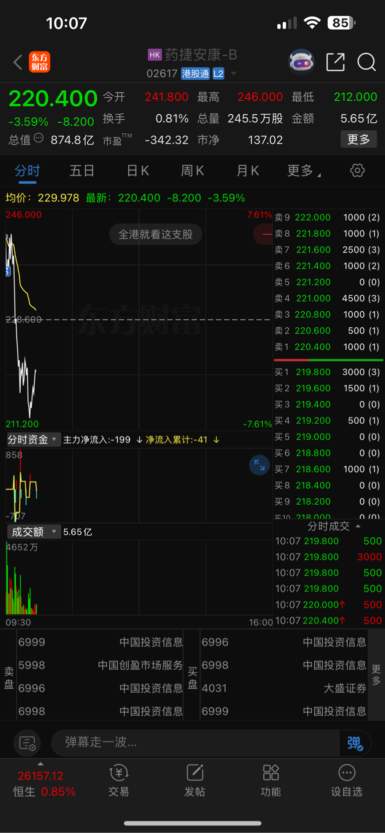 $药捷安康-B(HK|02617)$ 竞价高开出永远是对的,昨天尾盘拉这么猛,想想也知道要获利出货啊