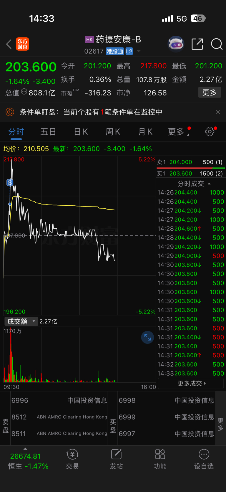$药捷安康-B(HK|02617)$ 给机会就卖
