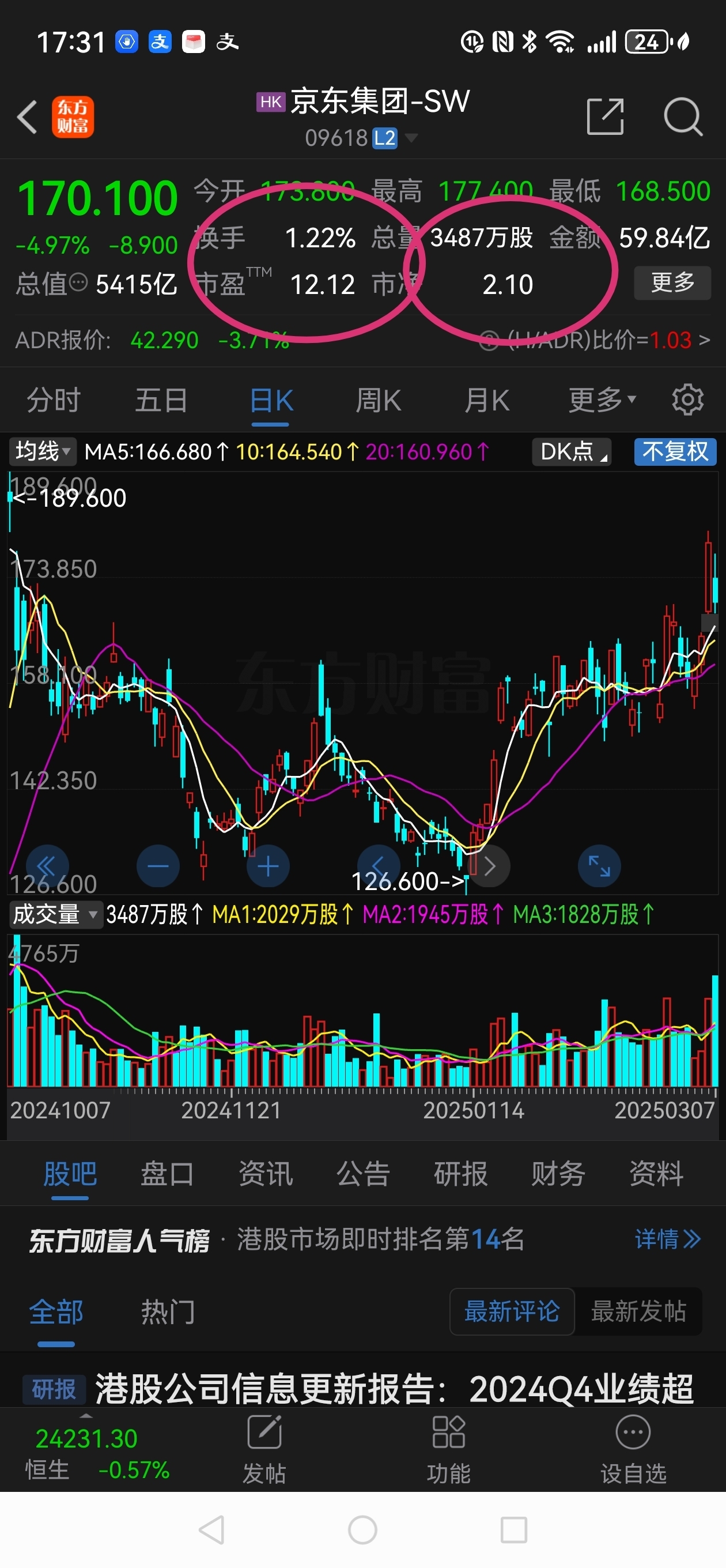 $京东物流(HK|02618)$ 上周五京东系的三家上市公司京东健康、京东物流和京东集团-SW全线下跌。而且京东健康和京东物流是放出天量的下跌,上周四京东物流和京东健康同时发布年度业绩报告,业绩是靓丽。是谁在恶意做空京东系?