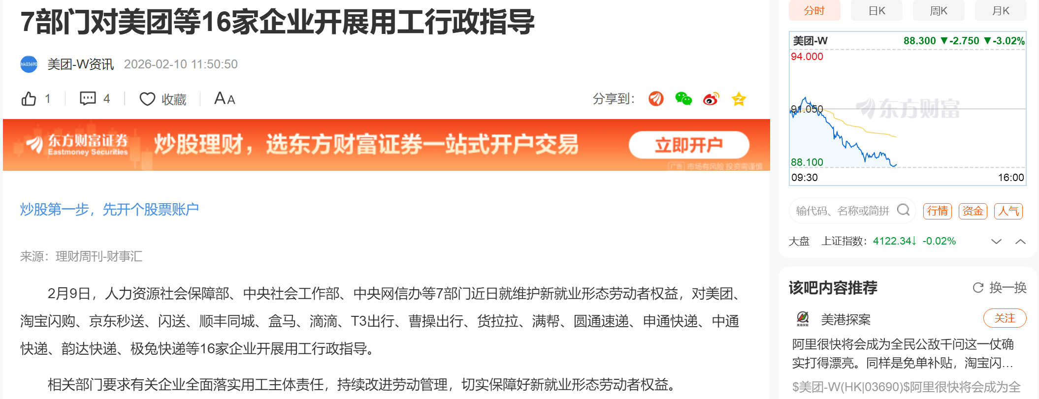 很有意思,就美团的股吧发了这消息,美团的主力正在做空。其它快递股都不提这事,其实京东在给骑手的保障上是做的最好的,大家都统一要求,应该算利好。