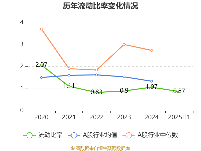 2025年上半年,公司流动比率为0.87,速动比率为0.86。