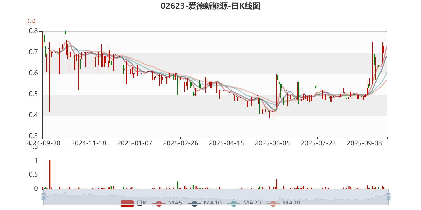 以9月30日收盘价计算,爱德新能源目前市盈率(TTM)约3.43倍,市净率(TTM)约0.47倍,市销率(TTM)约1.86倍。