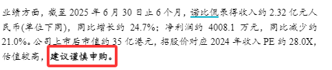 值得注意的是,在诺比侃上市前,有券商在有关诺比侃的申购指南中表示:“公司上市后市值约35亿港元,招股价对应2024年收入PE约28.0X,估值较高,建议谨慎申购。”