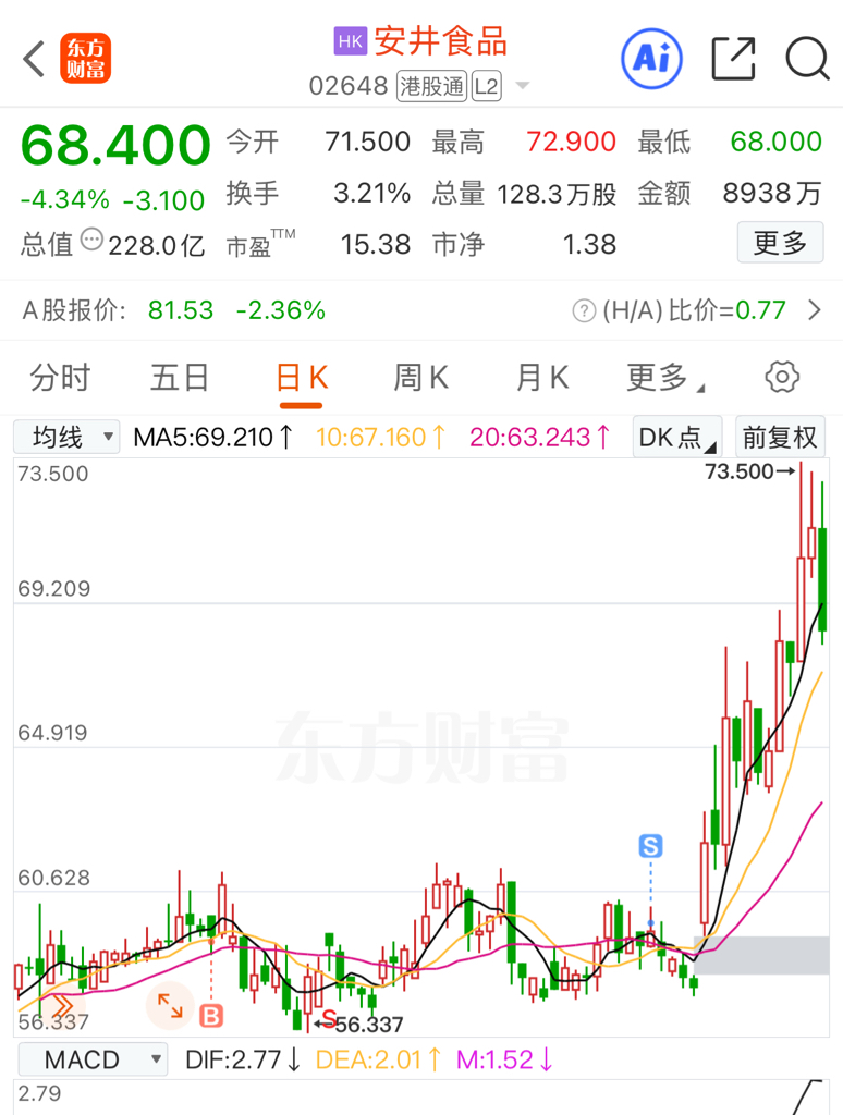 $安井食品(HK|02648)$ 上涨前移仓加泡泡,哎,应该等两天