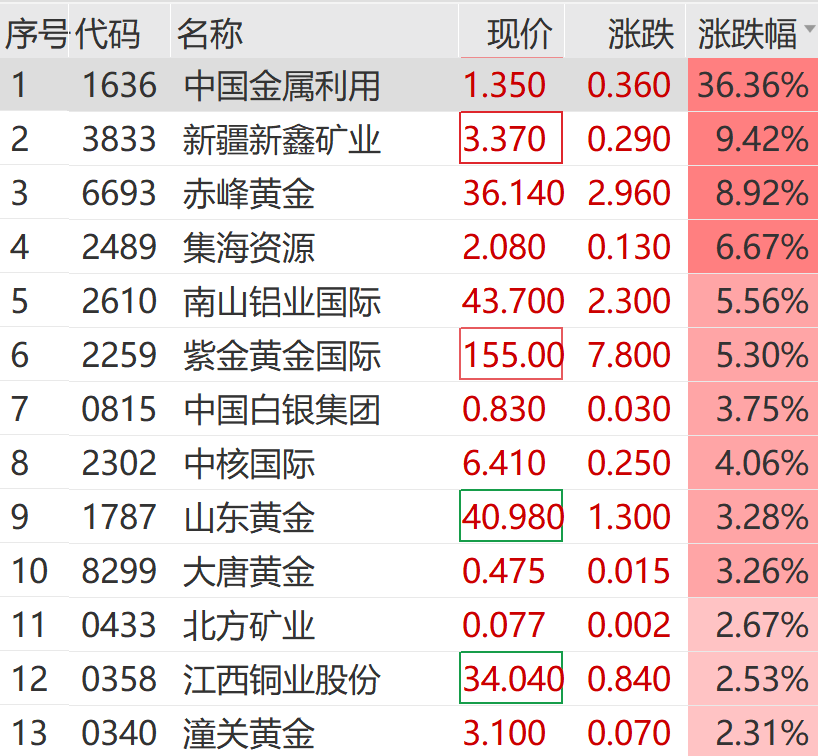 黄金股猛涨