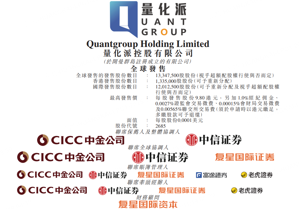 量化派发布公告,于11月19日-11月24日招股,公司拟全球发售约1334.75万股股份,预期将于11月27日上市。