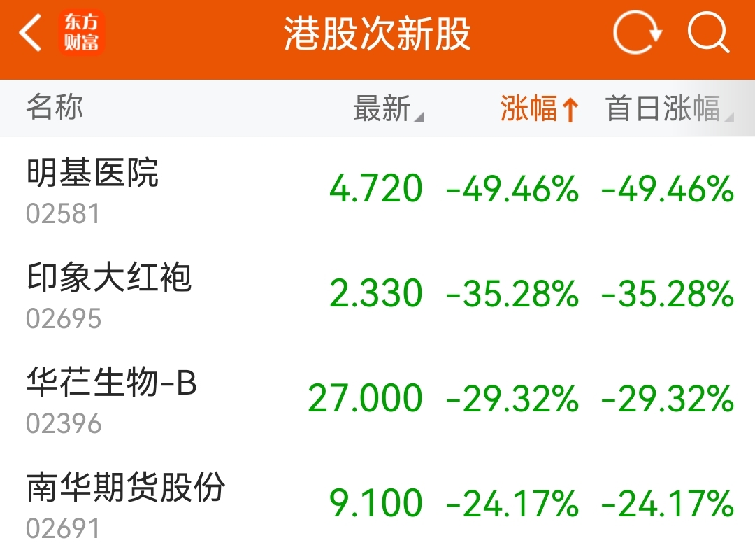 $南华期货股份(HK|02691)$ 这几个同一天上市就被打懵了!
