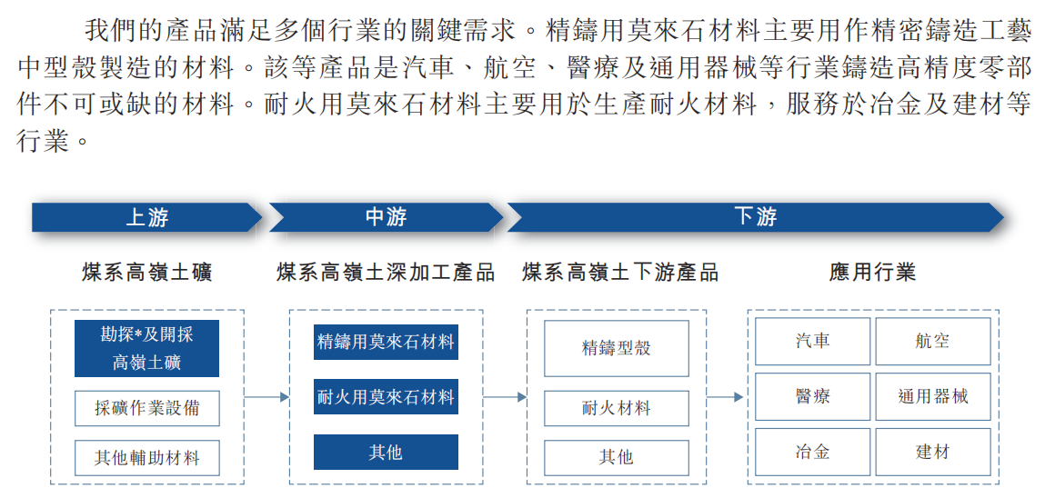 金岩高新自2012年成立以来,逐步构建起从采矿到销售的完整产业链,业务涵盖采矿、研发、加工、生产和销售,拥有丰富优质矿产资源,产品包括精铸用莫来石材料、耐火用莫来石材料等,在煤系高岭土领域站稳了脚跟。