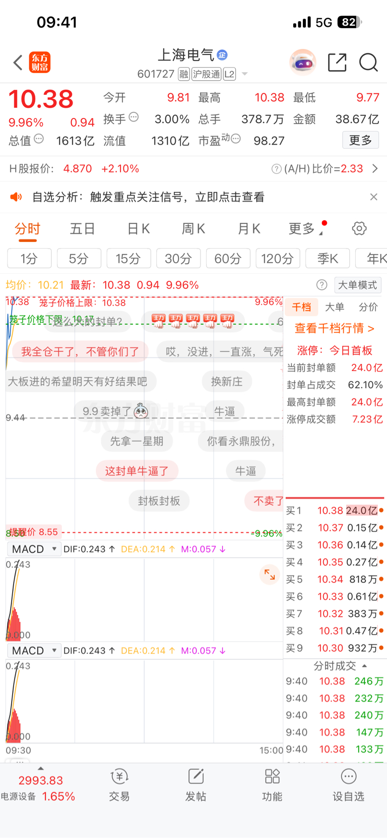 大A24亿压在涨停位