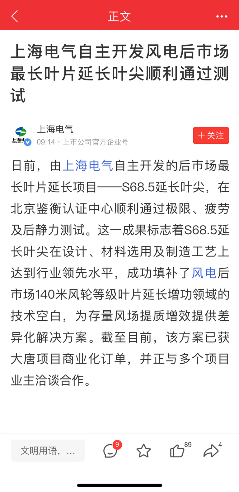 $上海电气(HK|02727)$ 核电和风电技术都突破了