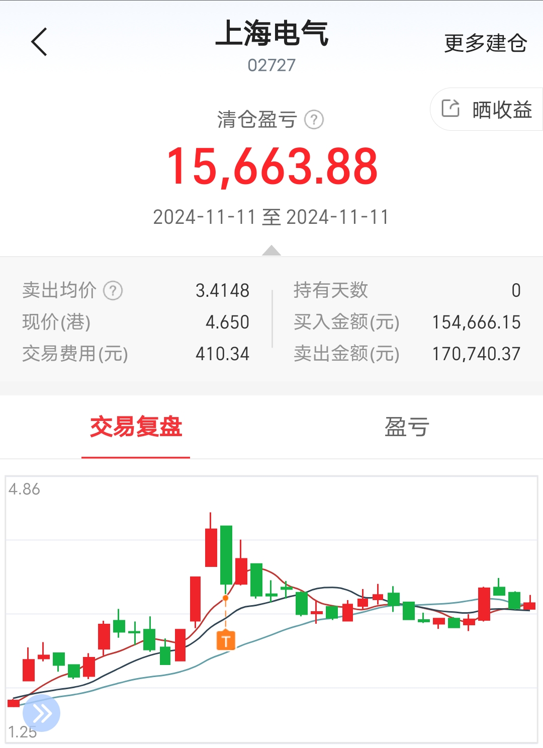 $上海电气(HK|02727)$ 去年双十一,三分钟搞了1.5万收益,现在想起来也挺惊心动魄的。