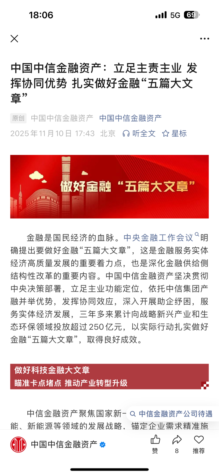 $中信金融资产(HK|02799)$ 最近公司发的各种战绩推文很密集啊!