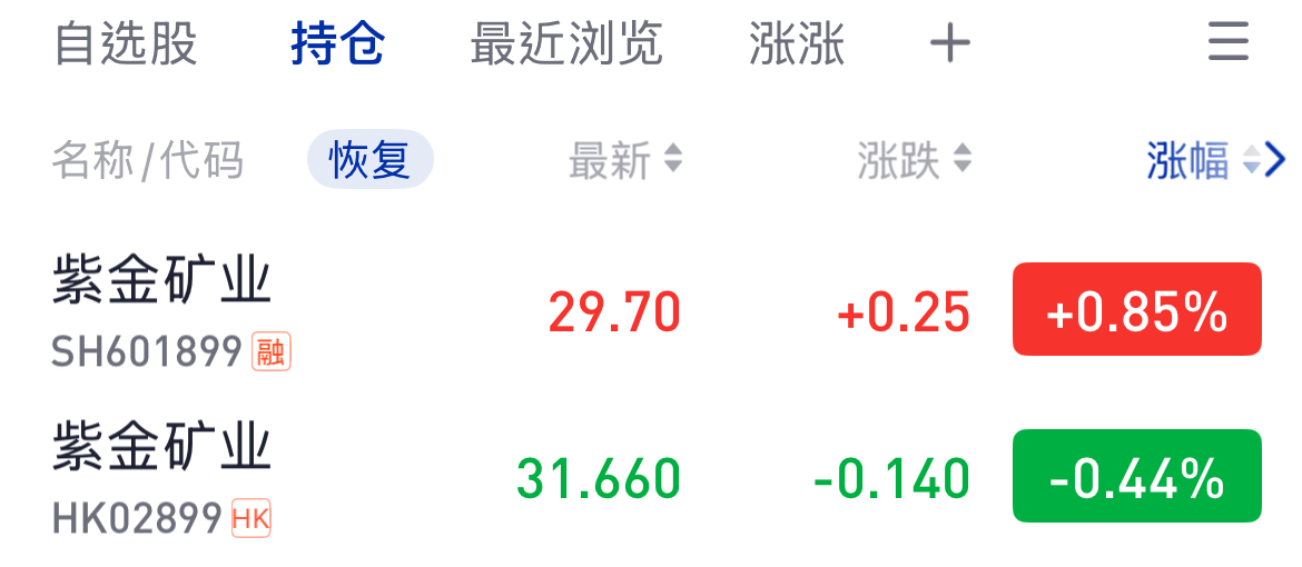 $紫金矿业(HK|02899)$ 每天看这个涨跌幅都有一种被欺负的无力感