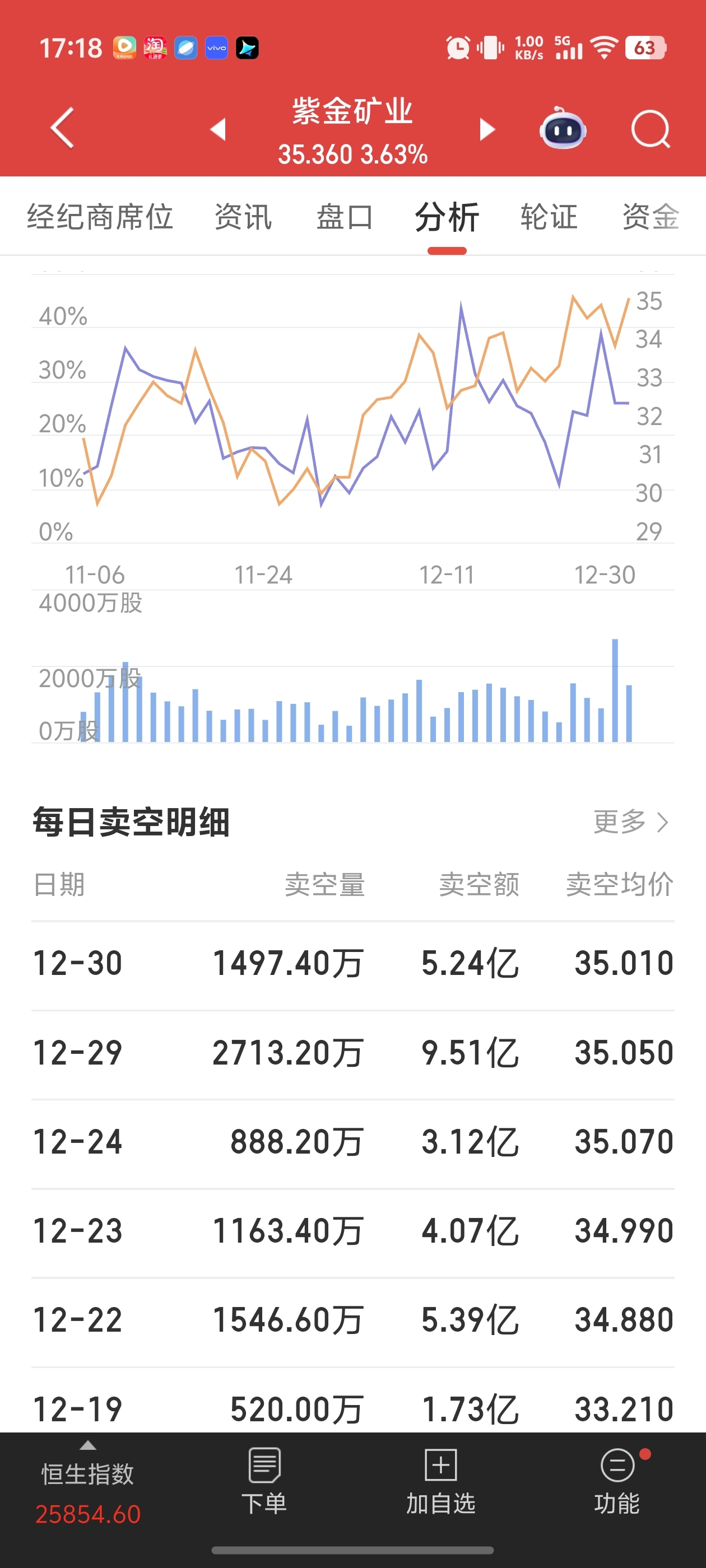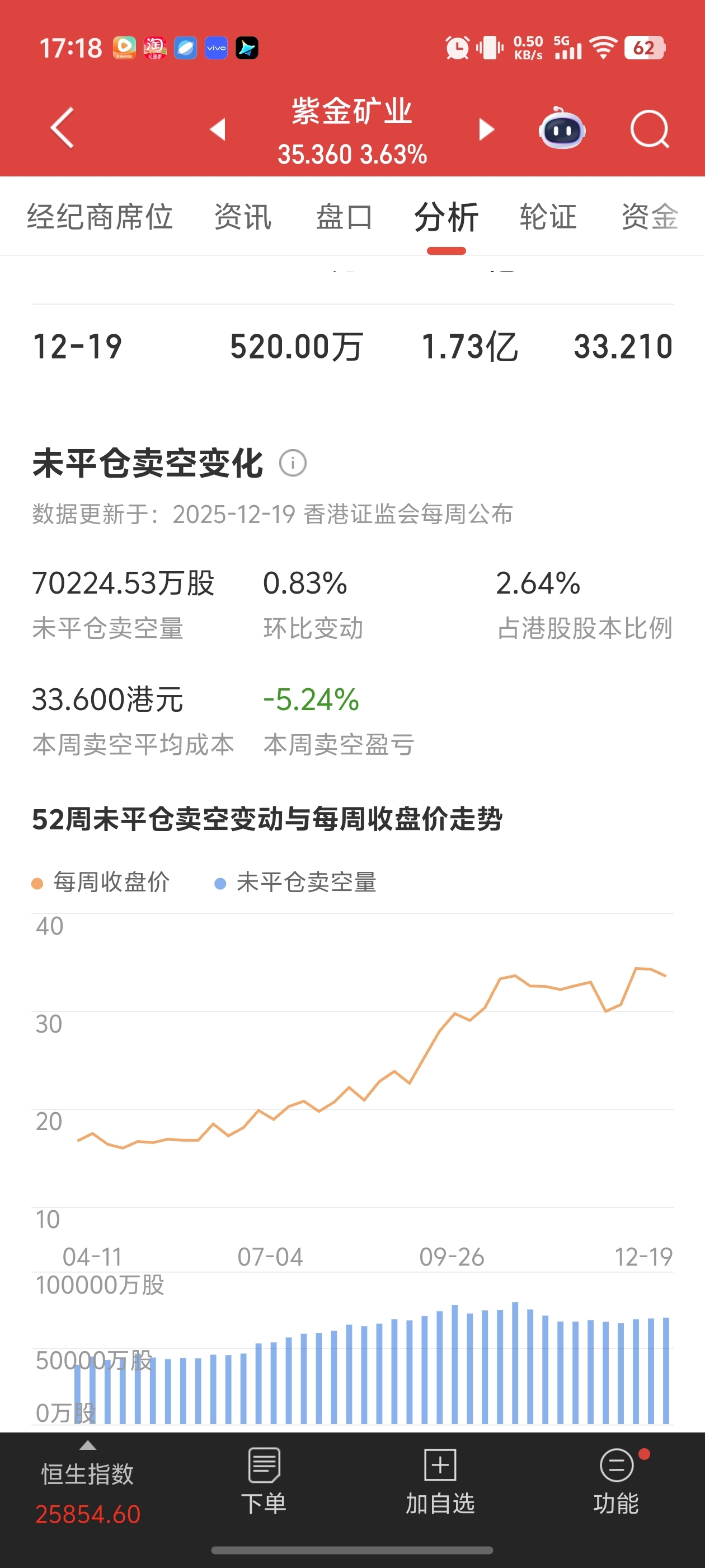 $紫金矿业(HK|02899)$ $紫金矿业(SH601899)$ $洛阳钼业(HK|03993)$ 紫金矿业最新空单数据,七亿多股价值二百五十亿的天量低价空单,想要平仓的话得花五百亿,空空最后的疯狂,年底逼空杀猪过年