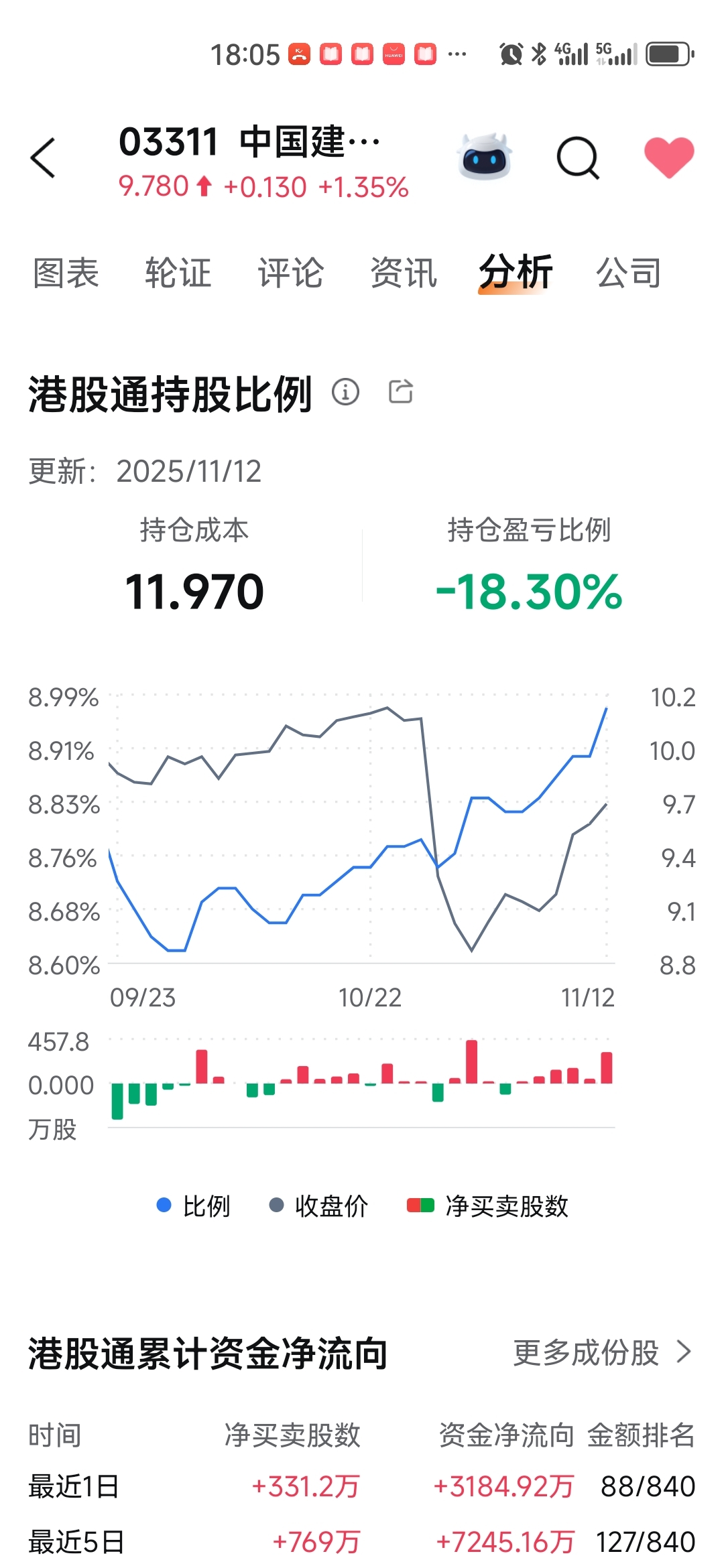港股通持仓成本11.97