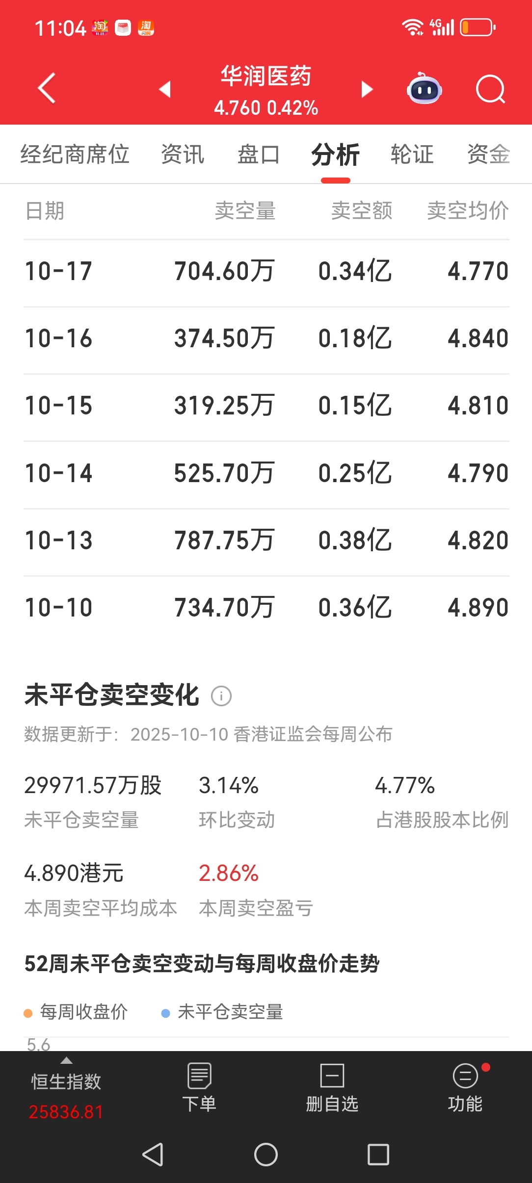 $华润医药(HK|03320)$ 32683.37,二周多了2千万沽空。