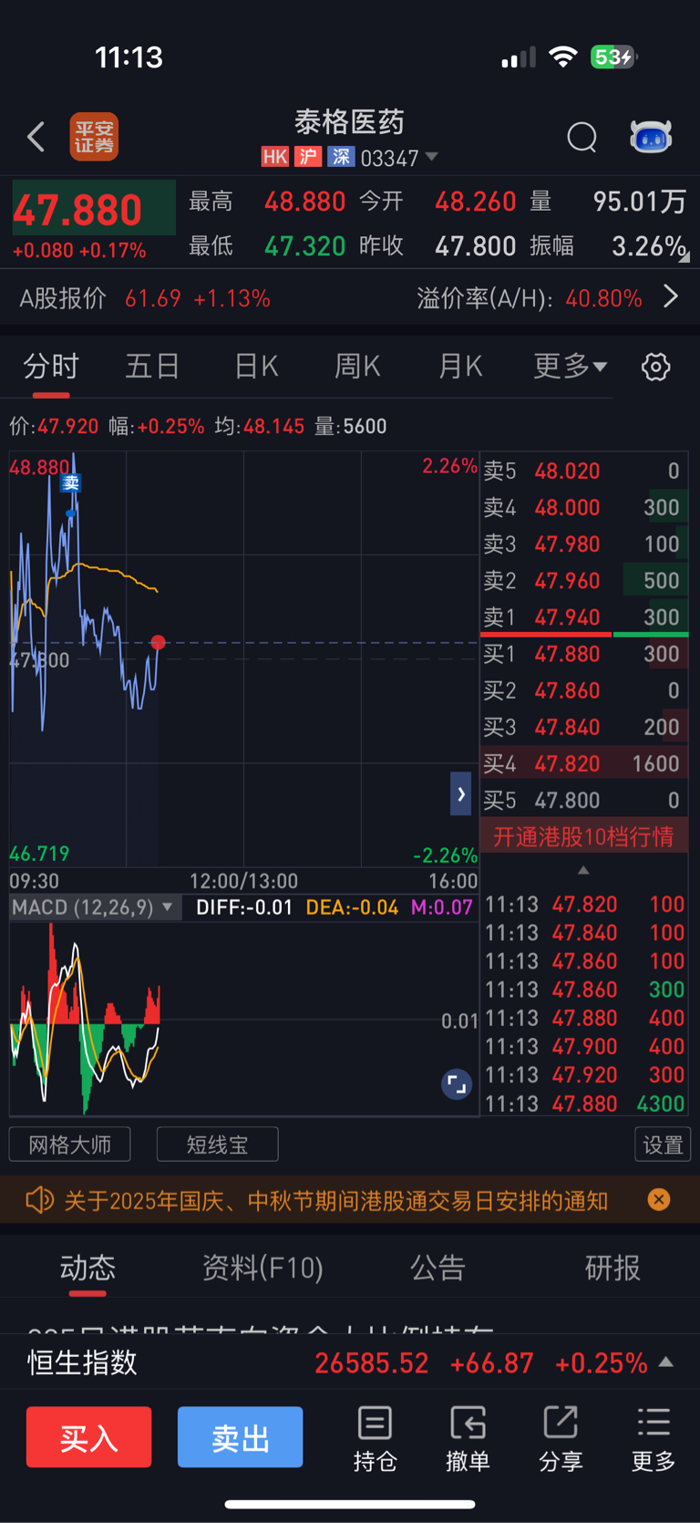 $泰格医药(HK|03347)$ 还是挺看好你的 t了一半 之前44.5进的