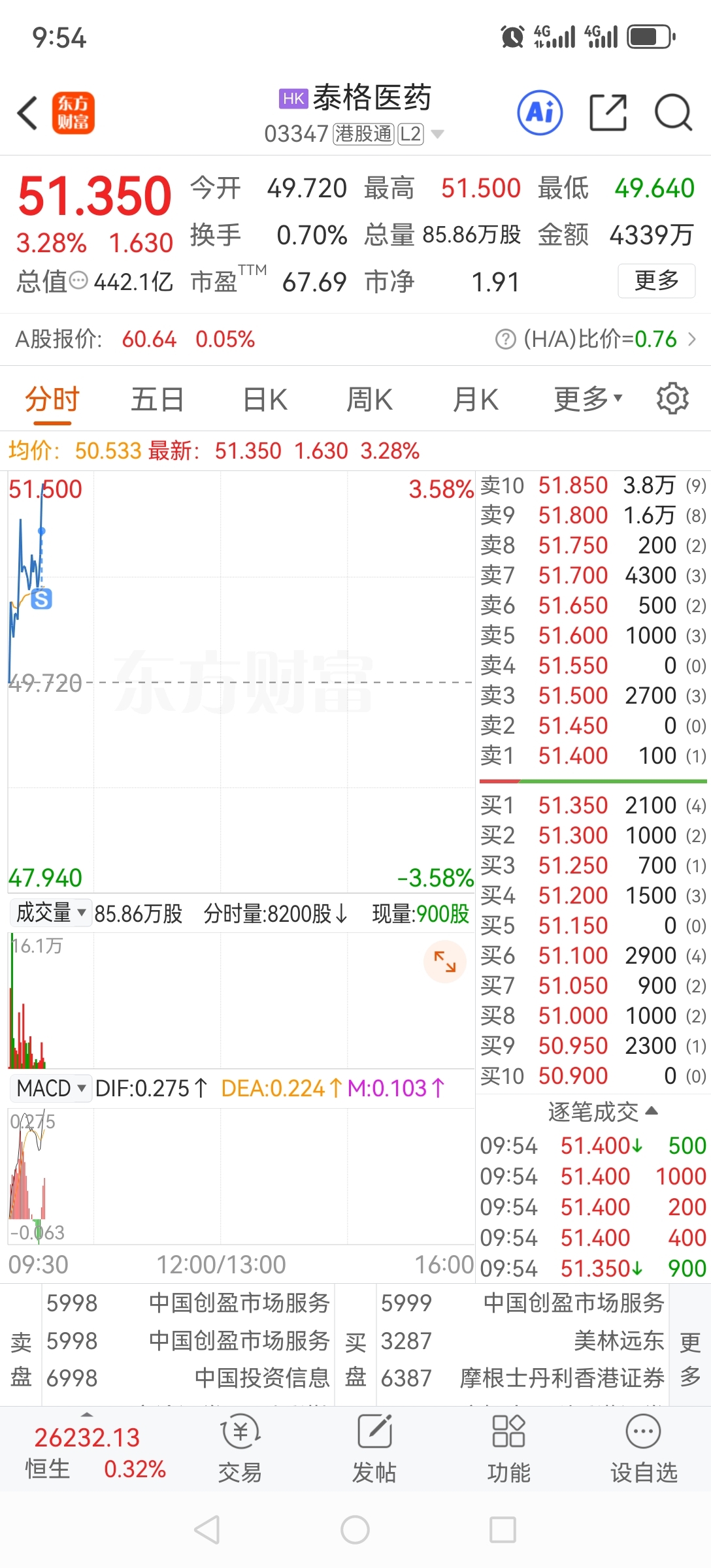 $泰格医药(HK|03347)$ 昨天今天终于卖光你,以后专心玩a股泰格