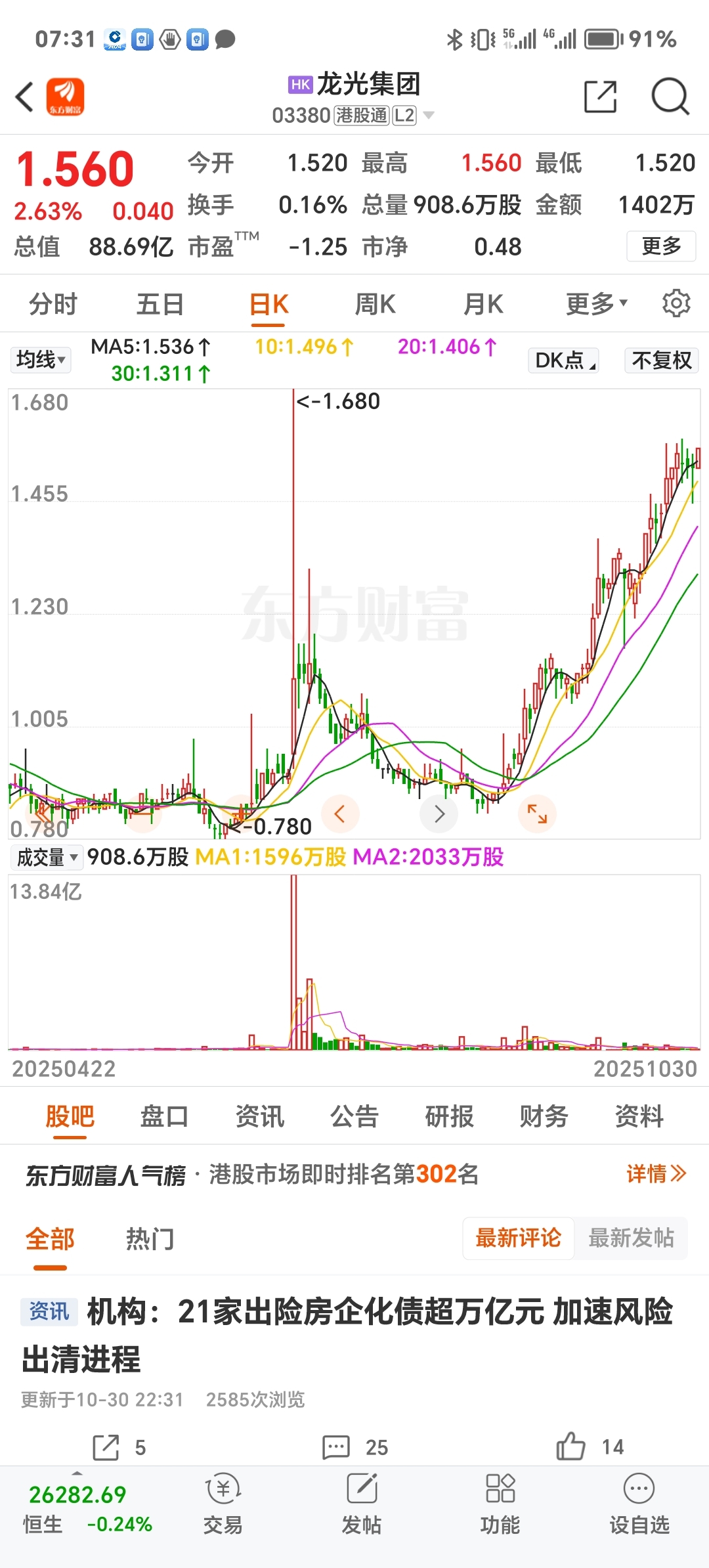 龙光,这次稳扎稳打,一步一个脚印的向上走,拿下7-10的1.68高地,稳妥的是这