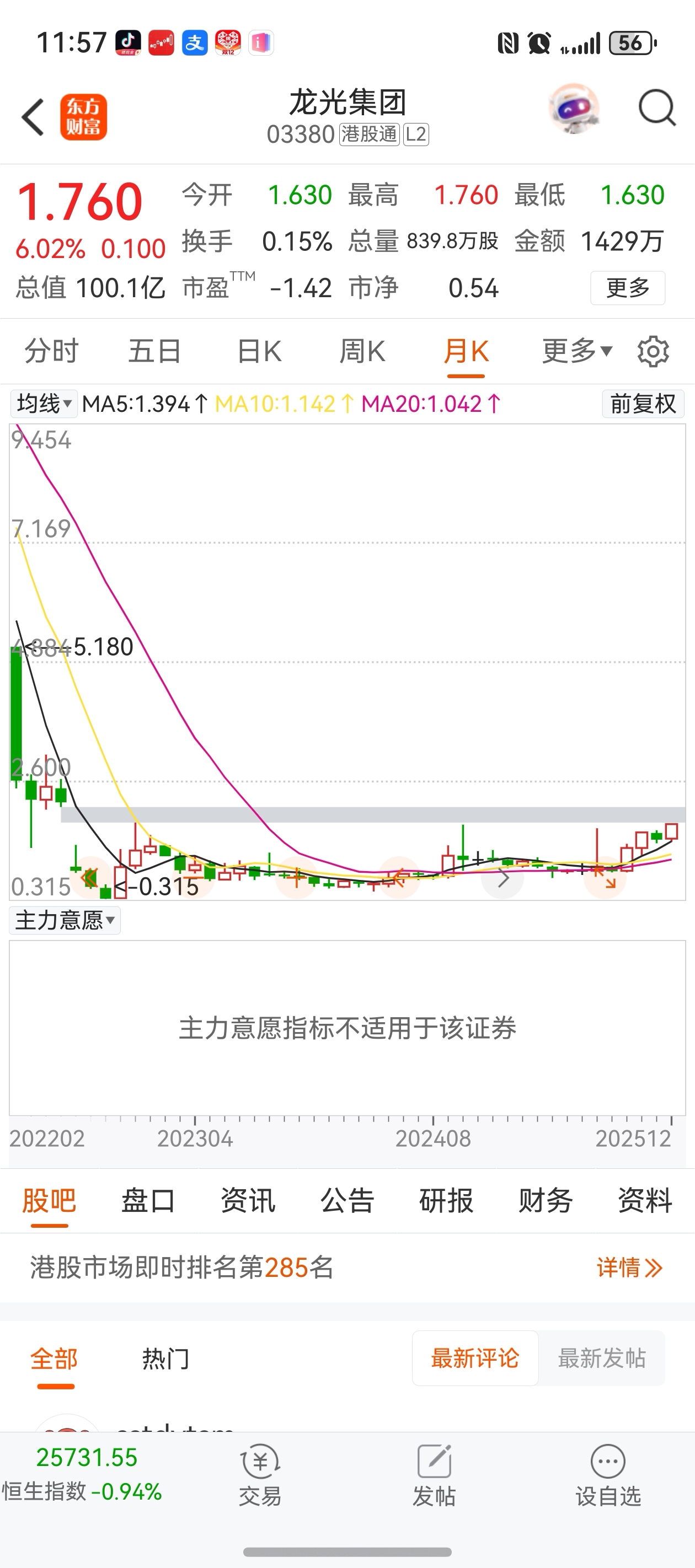 $龙光集团(HK|03380)$ 突破反弹新高1.75,月线还在低部。龙光是龙头。