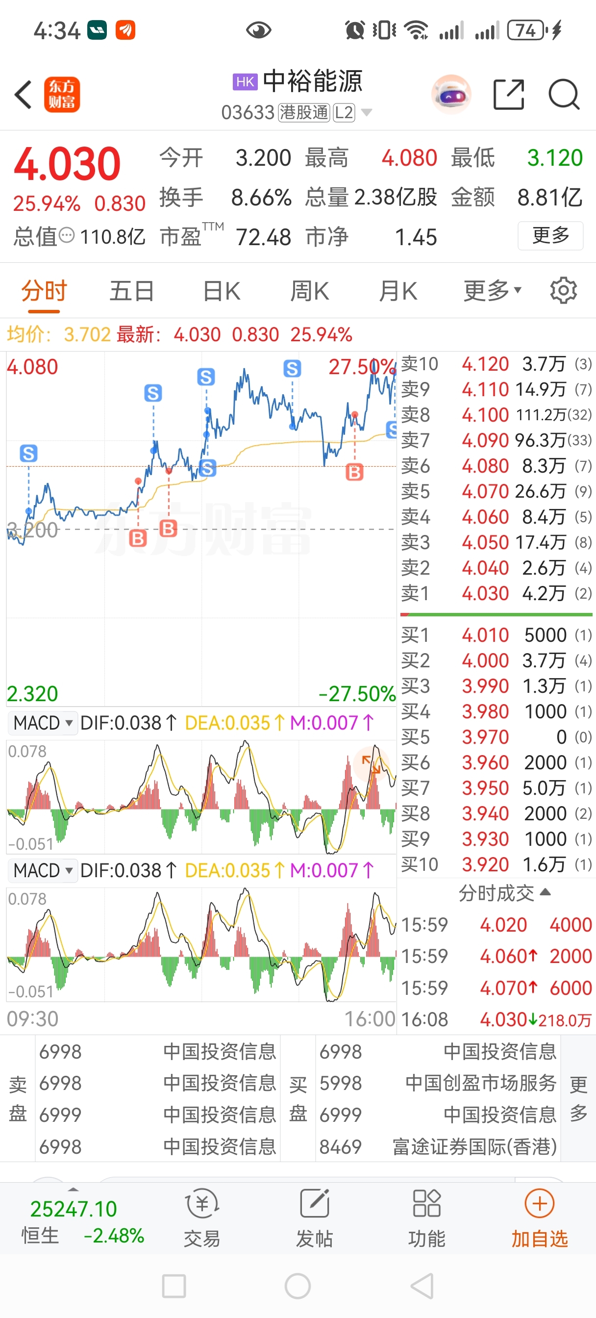$中裕能源(HK|03633)$ 7万股T了几次,尾盘清了,感谢主力