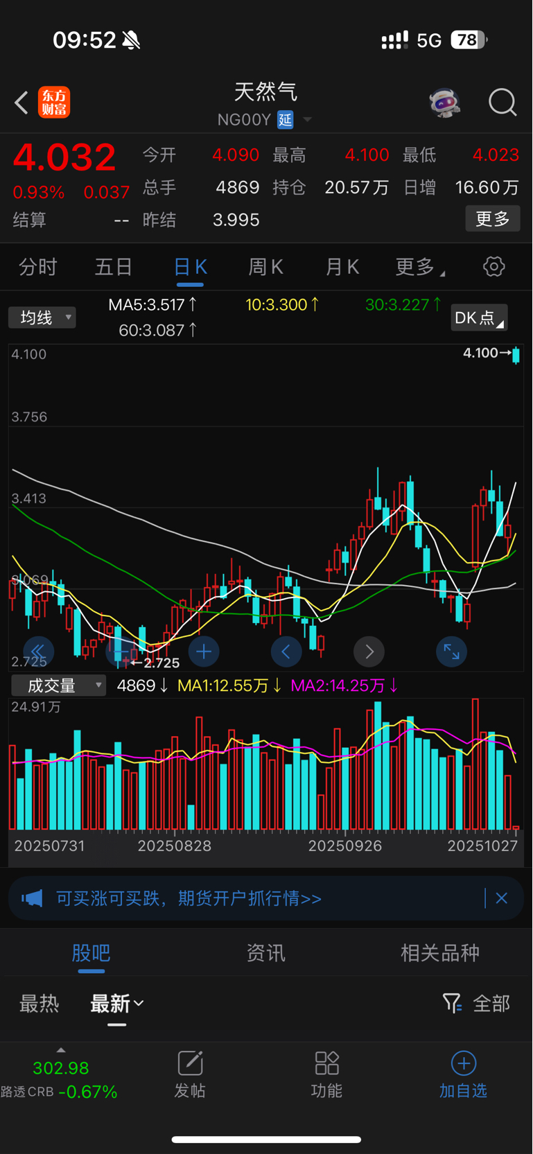 天然气期货高开大涨,中裕能源底部天然气,大涨30 cm就在这几天 ,补仓