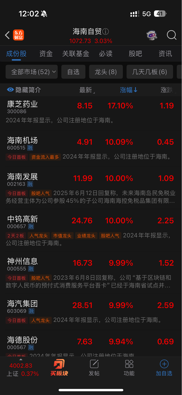 A股今天开盘,海南板块重大利好,全部涨停.能源类也是涨幅靠前,中裕能源有海南加能