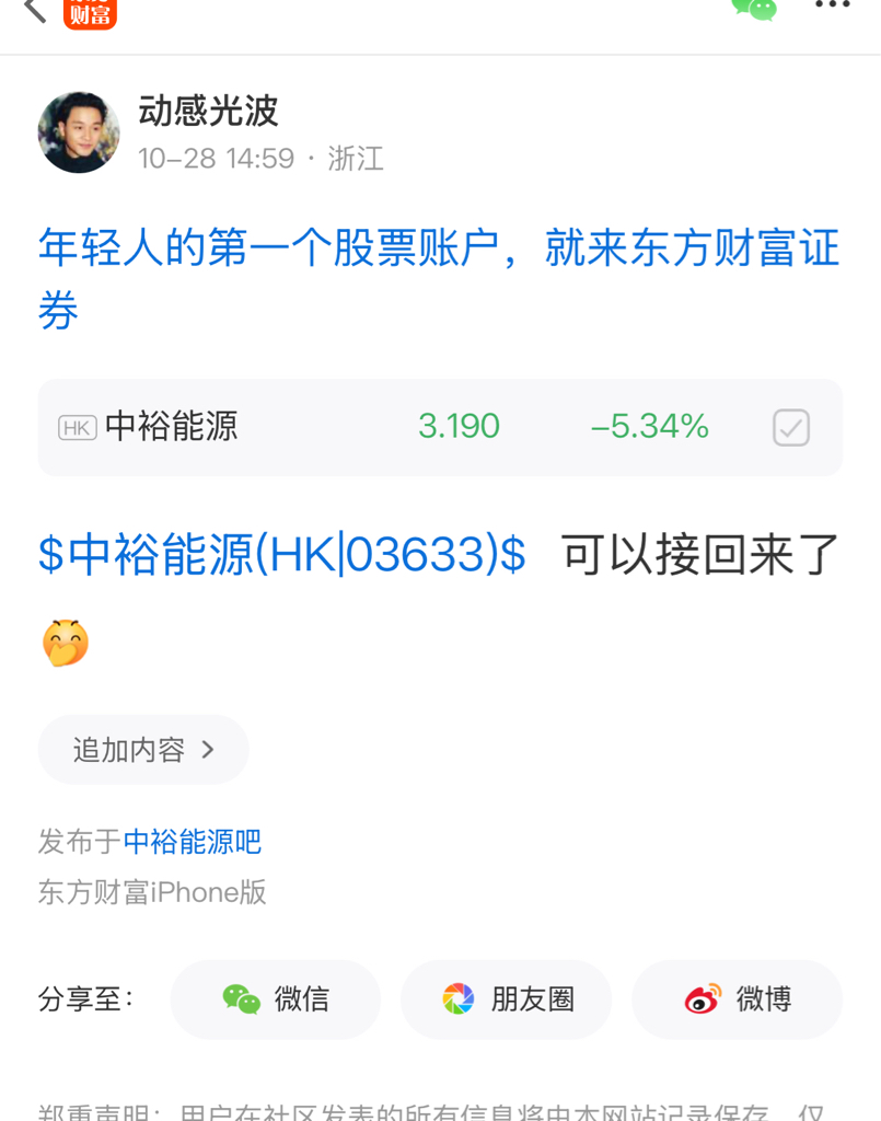 温馨提示: 1.根据《证券法》规定,禁止编造、传播虚假信息或者误导性信息,扰乱证券市场;2.用户在本社区发表的所有资料、言论等仅代表个人观点,与本网站立场无关,不对您构成任何投资建议。用户应基于自己的独立判断,自行决定证券投资并承担相应风险。《东方财富社区管理规定》