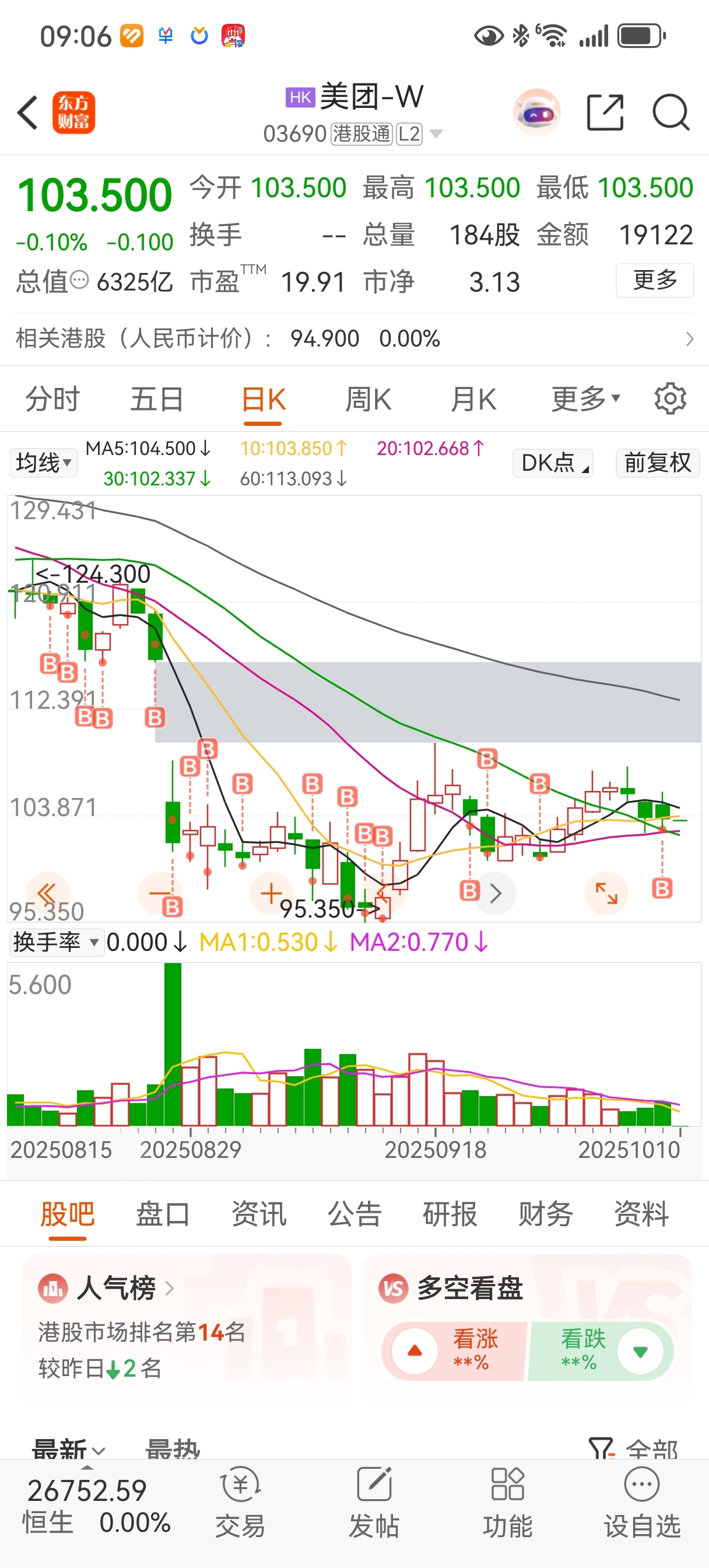 $美团-W(HK|03690)$ 道听途说今天有点小风浪,我是准备好了,团团加油!