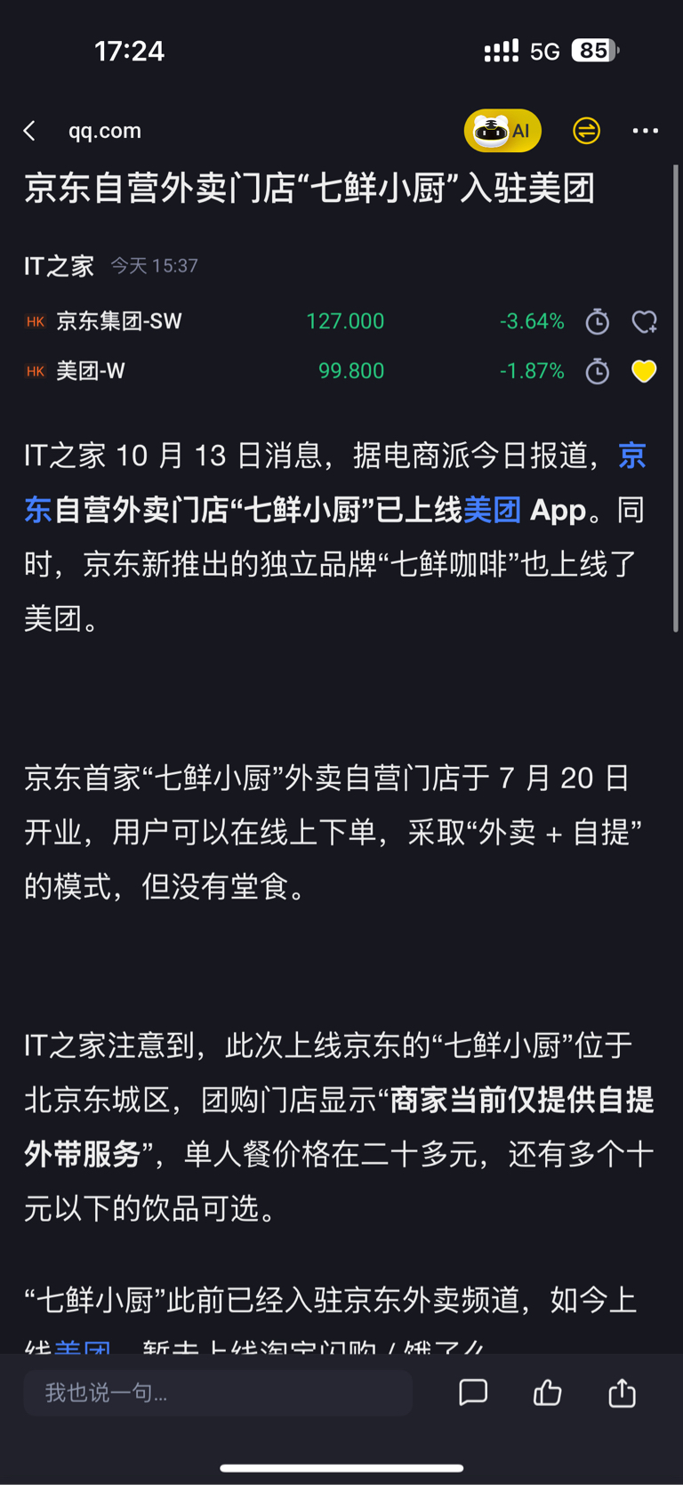 $美团-W(HK|03690)$ 狗东已经和美团合作了。