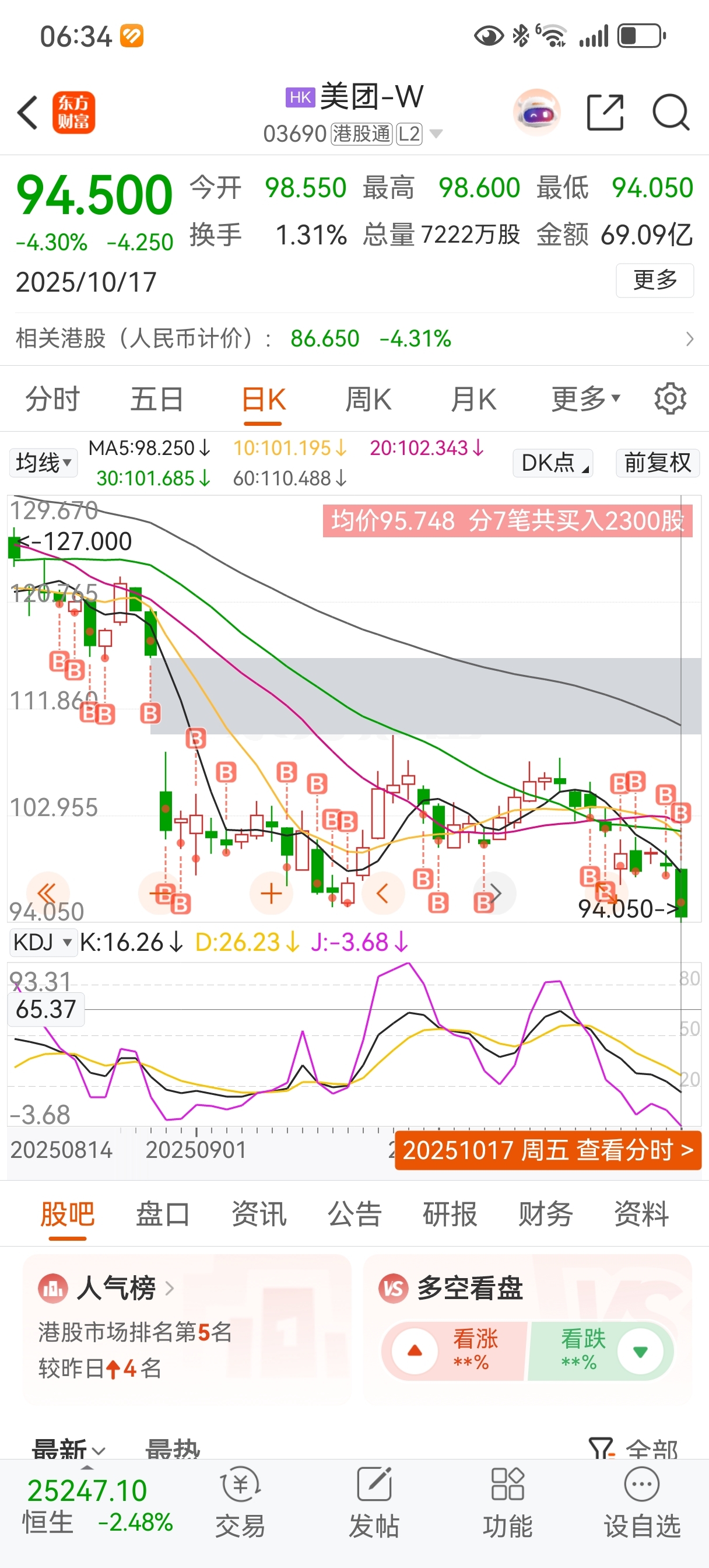 $美团-W(HK|03690)$ 下一步目标,跌破90再加,可能会忍不住,今年涨到120,不过分吧?