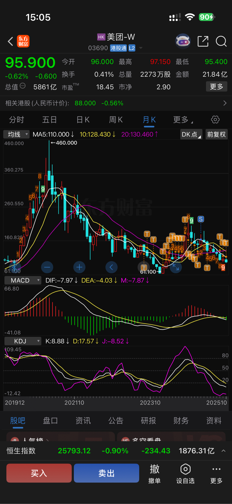 周线月线看仍然是单边下跌趋势,11月28日美团季报,已清仓大家珍重,经历过60元