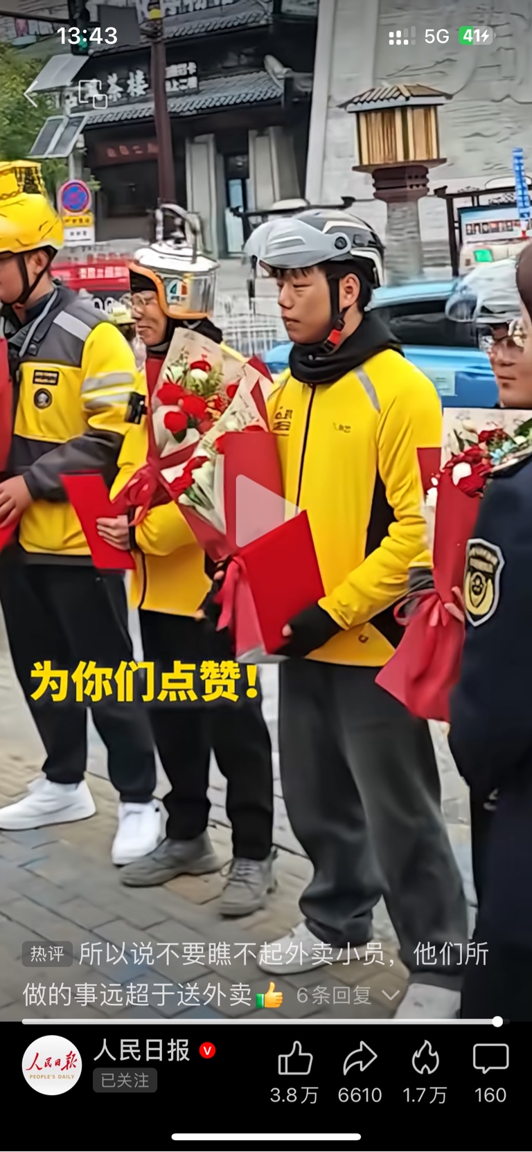 $美团-W(HK|03690)$ 全是黄马褂,美团应该好好奖励这些外卖小哥