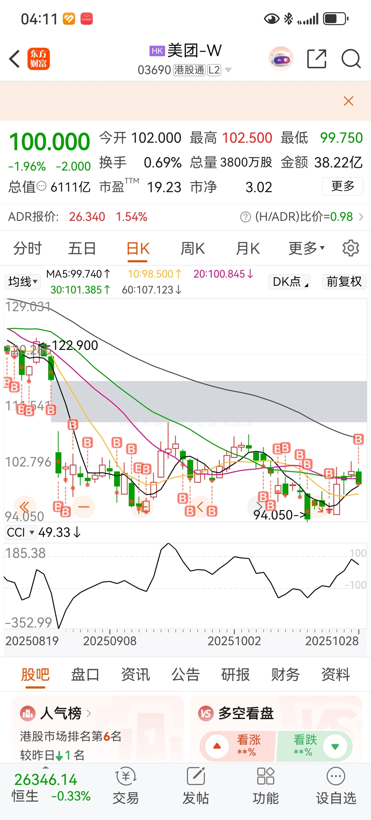 $美团-W(HK|03690)$ 团团,我都想闭关休养生息了,你又来一个小跌,那就小买吧,加油,让大伙省省心!