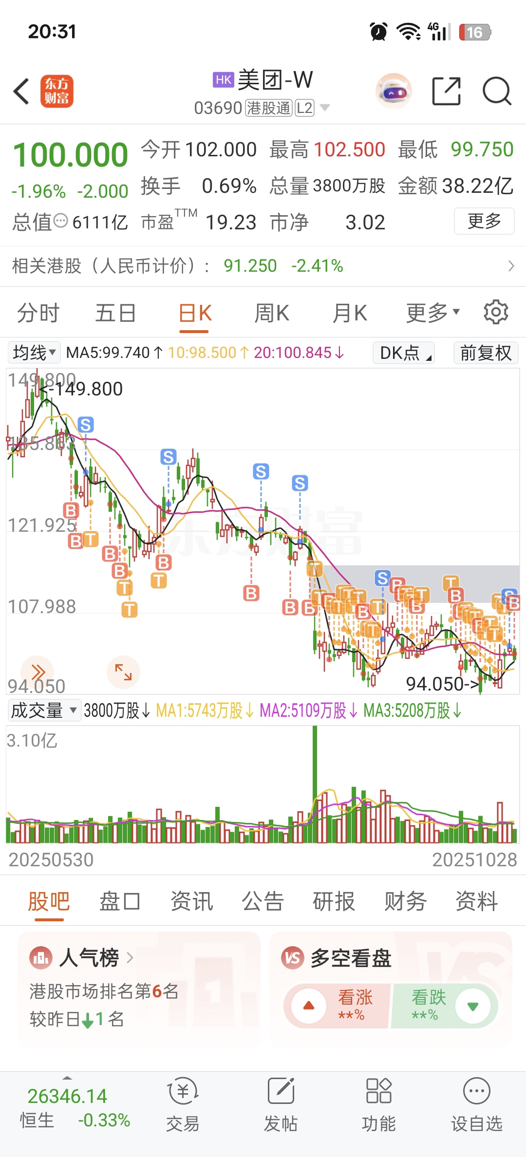 $美团-W(HK|03690)$ 看好的股票可以一直持有并不断做t