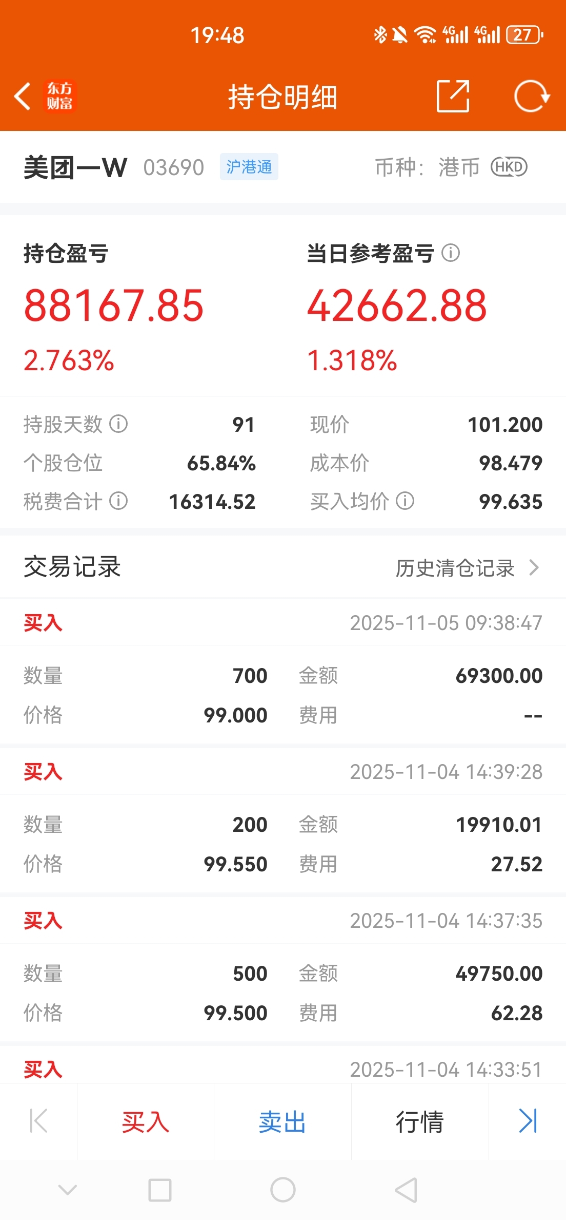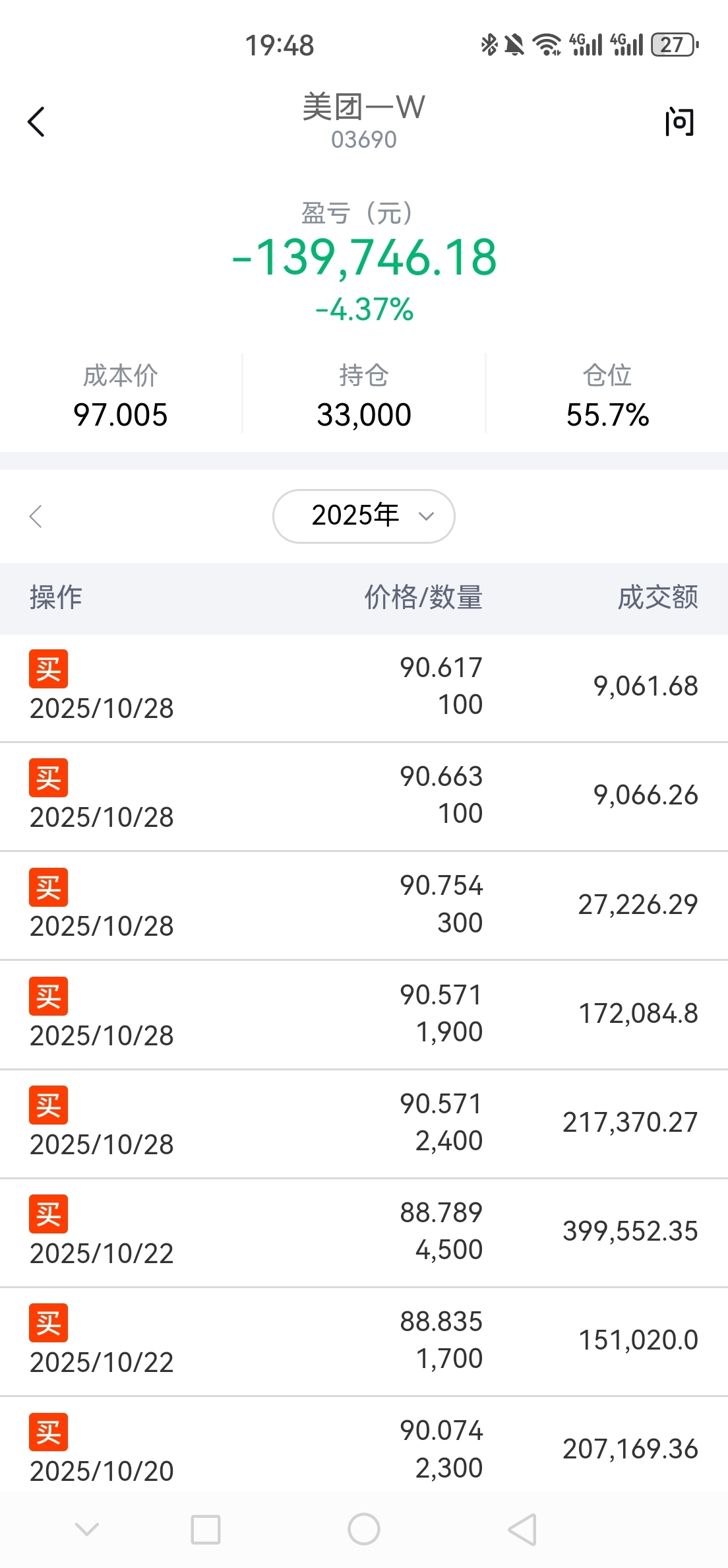 持有91天,现仓位已达60%。仍浮亏中。小美,加油