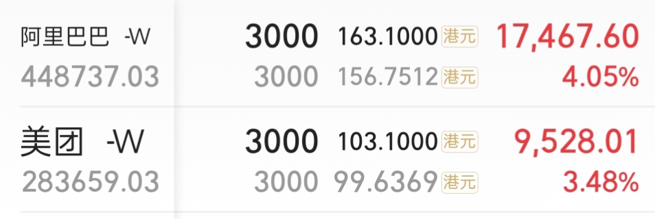 支持美团与阿里。柴米油盐生活消费就用美团和阿里。今天美团和阿里共盈利2w,再接再