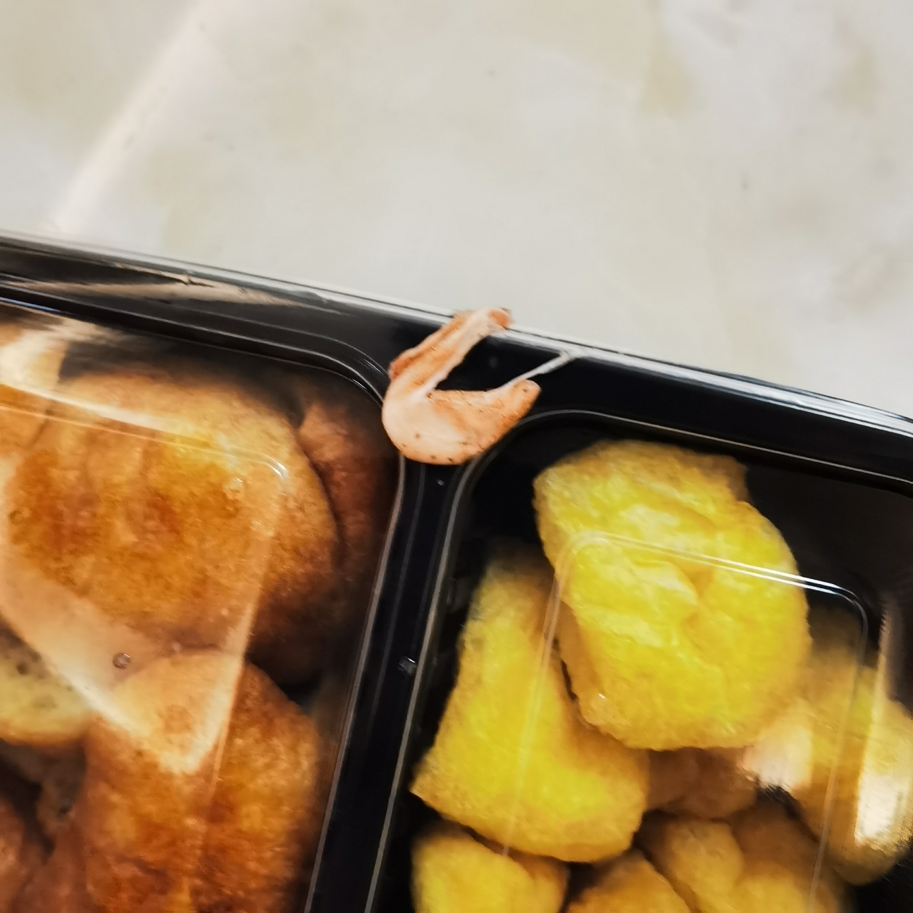 准备吃火锅,在美团小象超市买个菜,盒子边上面为什么有坨口香糖?吐了