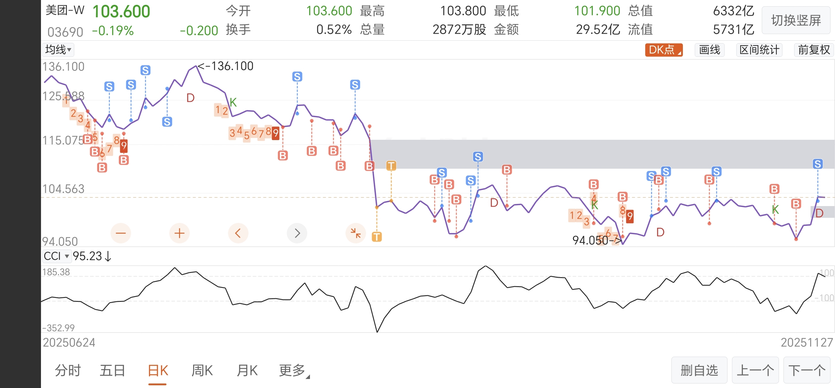 整体来看,美团这几月波动太小了,一直跌,没有像样的反弹,赚的还赶不上利息多