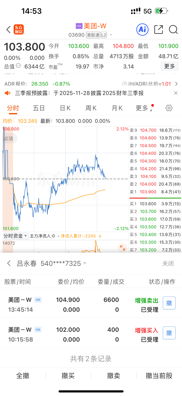 $美团-W(HK|03690)$ 居然没卖出去,