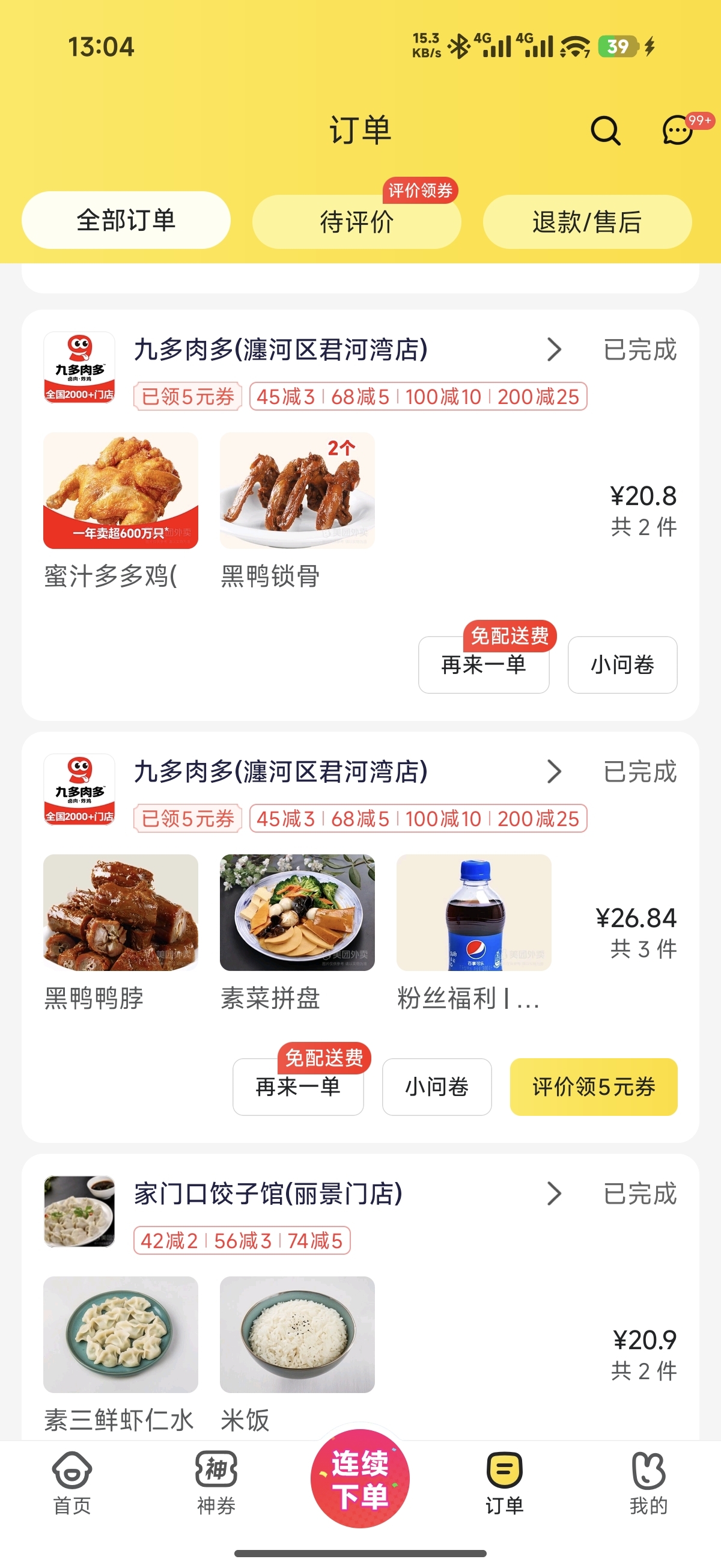 昨天在美团下了11单
