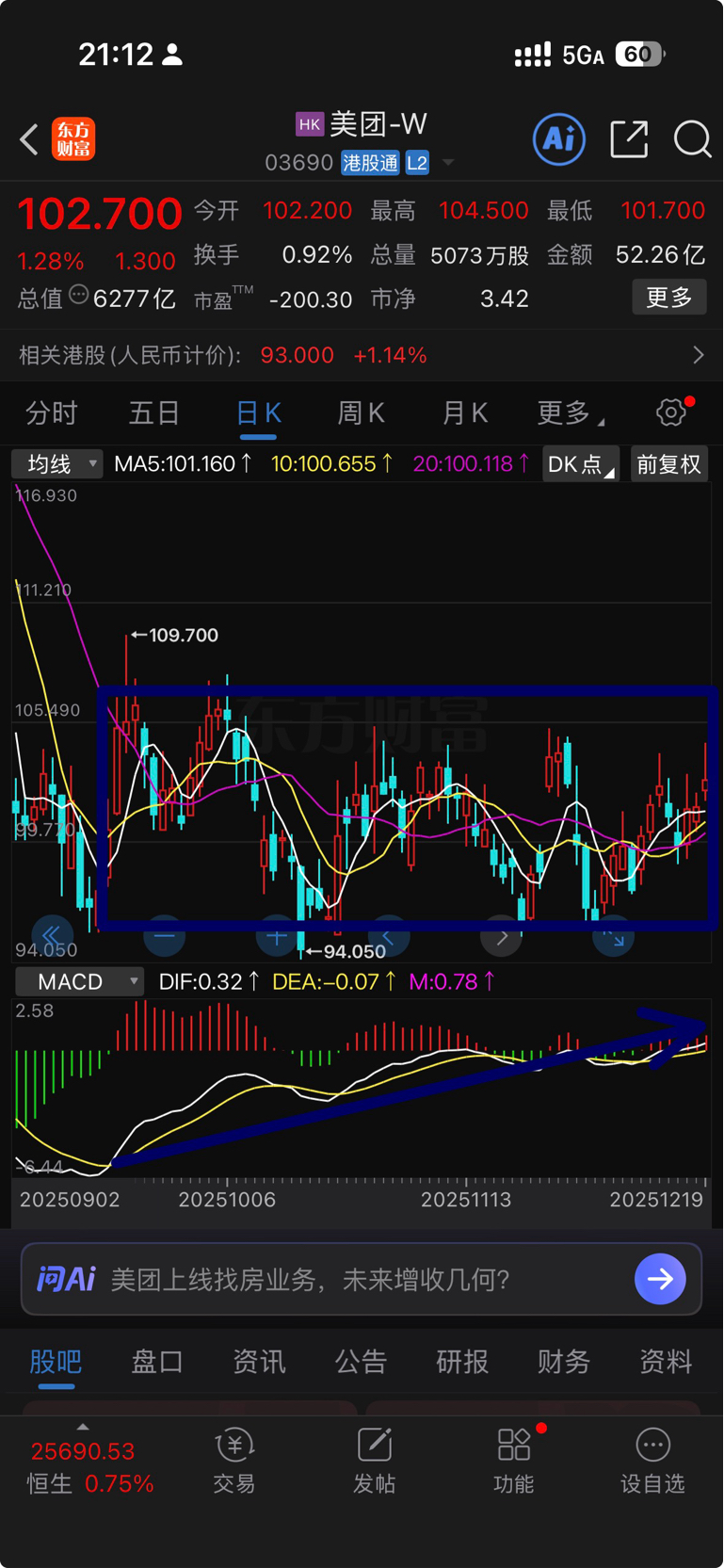 $美团-W(HK|03690)$ 潜水三个月了,看起来有点起色了!