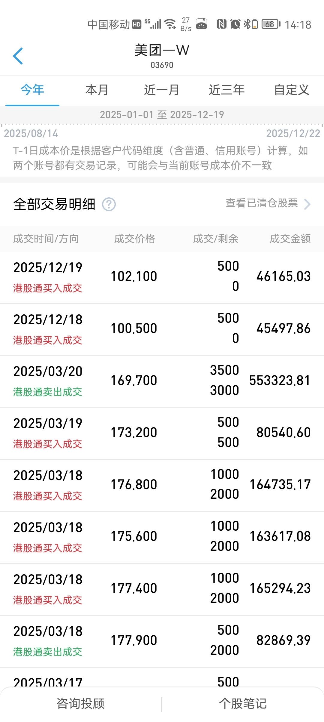 $美团-W(HK|03690)$ 现在买入比三月份一股便宜了70块我已经很满足了