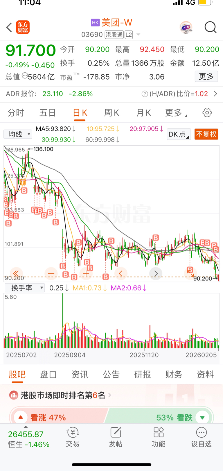 $美团-W(HK|03690)$ 敢不敢多跌点,我好加仓