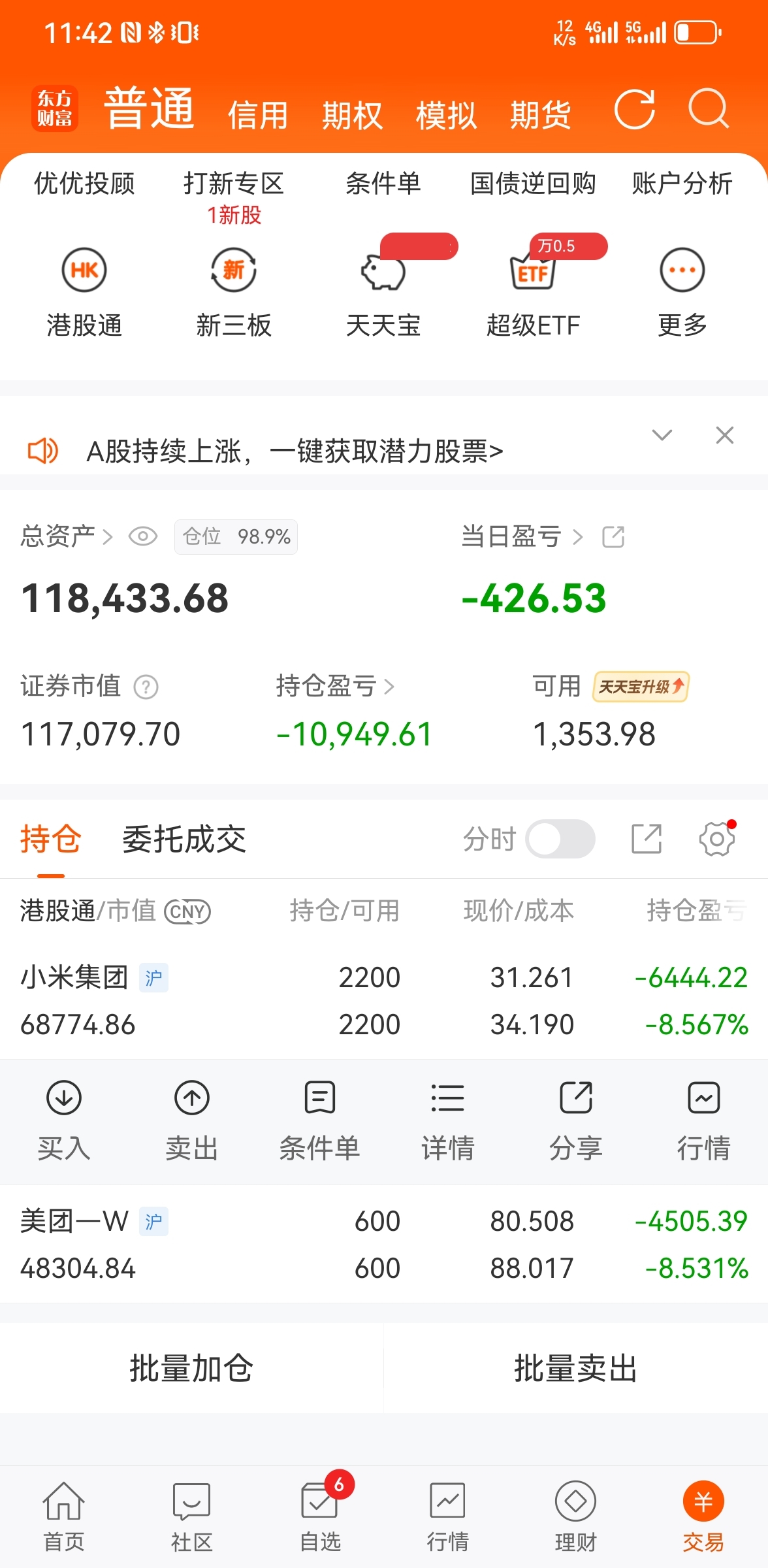 美团理想小米我都有,错过大A牛市,天天在港股关灯吃面