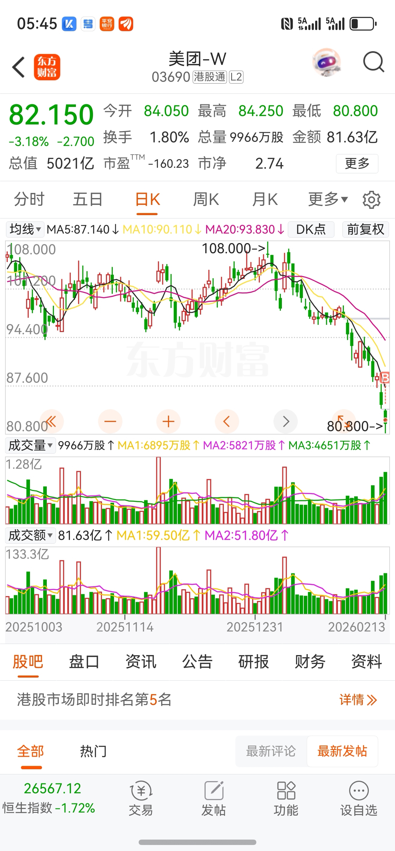 $美团-W(HK|03690)$ 怕啥,越跌越买